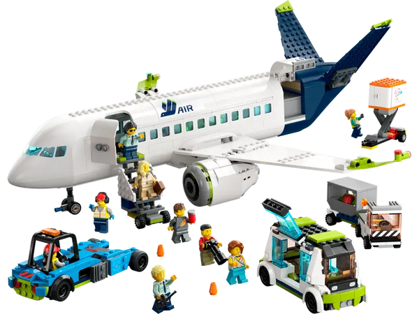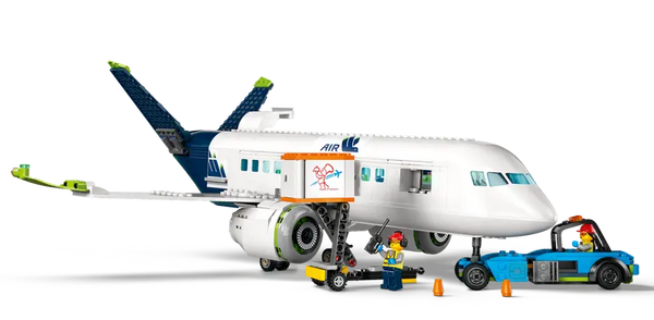 - Model airliner and ground support vehicles building toy set – LEGO® City Passenger Airplane (60367) set with realistic detailing and functions