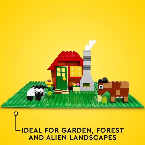 Set the scene for open-ended creative play with the LEGO® Classic Green Baseplate (11023). Measuring over 9.5 in. (25cm) square, this green toy-building base gives kids a spacious 32x32-stud LEGO landscape on which to build, play and display.