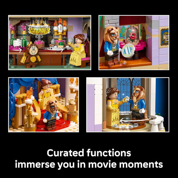 Embrace your passion for creative displays and fantasy princess castles with this Beauty and the Beast Castle (43263) LEGO® ǀ Disney Princess building kit for adults. The buildable model features a 4-level castle with multiple rooms, including a ballroom with a spinning floor and a dining room with a table and spinning platters. There’s a removable grand staircase section and a tower room with an enchanted rose and hidden storage, plus a range of curated movie references and details. The set also includes 10 characters to bring scenes to life: Belle, the Beast, Gaston, LeFou and Maurice LEGO ǀ Disney minifigures, plus Lumière, Fifi, Cogsworth, Chip and Mrs. Potts LEGO ǀ Disney characters.